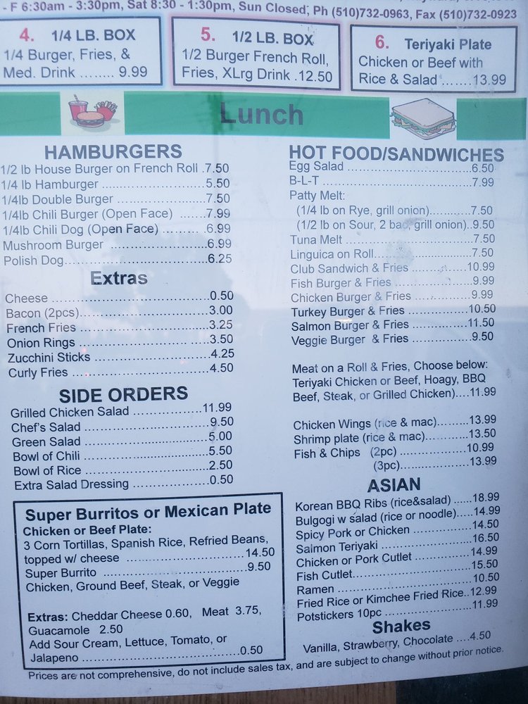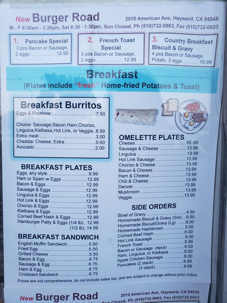 Burger Road is a hidden gem in Hayward, offering a diverse menu ranging from breakfast burritos to Korean BBQ ribs. The restaurant, owned by a woman, provides a casual and comfortable dining experience. Customers praise the quality of the food, with highlights including the 1/2 pound house burger, breakfast burritos, and spicy pork sandwich. The menu is extensive, catering to various tastes, with generous portion sizes that are worth the price. Despite minor issues like the lack of free water and toilet paper in the restroom, Burger Road delivers on flavor and quantity. The cozy atmosphere and quick service make it a go-to spot for a satisfying meal. Overall, Burger Road's simplicity, friendly service, and delicious offerings make it a must-visit for those craving a fulfilling dining experience.